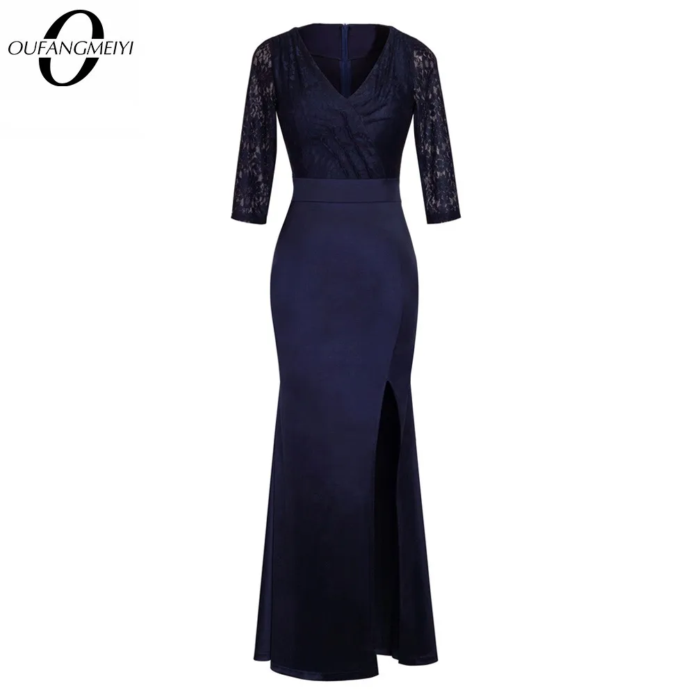 Frauen Elegante Classy V Neck Side Slit Tunika Edle Spitze Kontrast Lange Maxi Party Kleid Fur Besondere Anlasse Ea018 Dress Euro Dresses Inexpensivedress Sarong Aliexpress