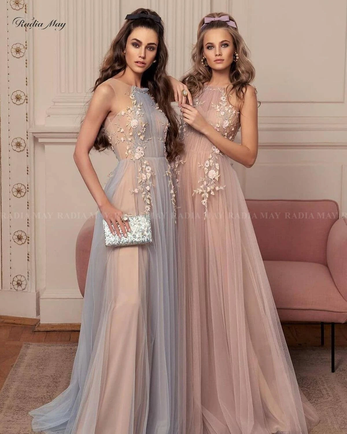 Elegante 3d Blumen Blau Champagne Abendkleid 2021 Lange Kleider Fur Besondere Anlasse Frauen A Linie Tull Arabisch Formale Prom Kleider Abendkleider Aliexpress
