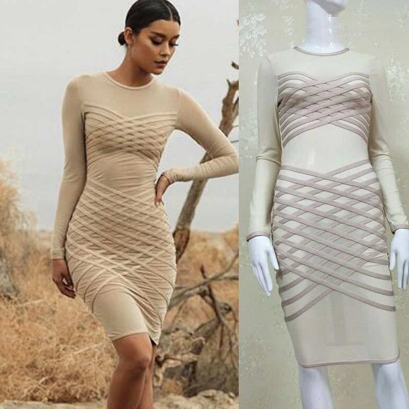2017 Herbst Beige Kleid Verband Kleid Promi Netz Durchsichtig Frauen Langarm Vestidos Besondere Anlasse Party Kleider Bandage Dress Party Dressesdress See Through Aliexpress