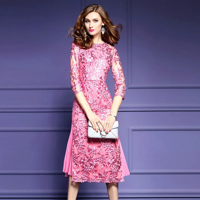 Frauen Elegante Mesh Hakeln Stickerei Kleid Fur Besondere Anlasse Brautjungfer Mutter Der Braut Sheer Sleeve Tunika Vestidos Party Dresses Woman Elegantdress Party Aliexpress