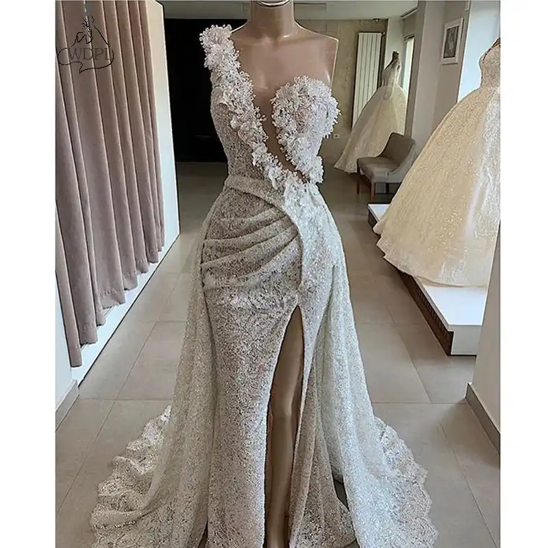 Glitter Spitze Eine Schulter Meerjungfrau Abendkleid Split Perlen Blumen Formal Prom Kleider Elegante Besondere Anlasse Kleid Nach Ballkleider Aliexpress