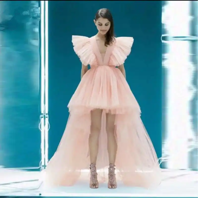 2020 Neue Hallo Low Prom Kleider Tiefen V Ausschnitt Asymmetrische Besondere Anlasse Kleider Heisser Verkauf Pfirsich Rosa Tull Lange Abendkleid Kleid Nach Ballkleider Aliexpress