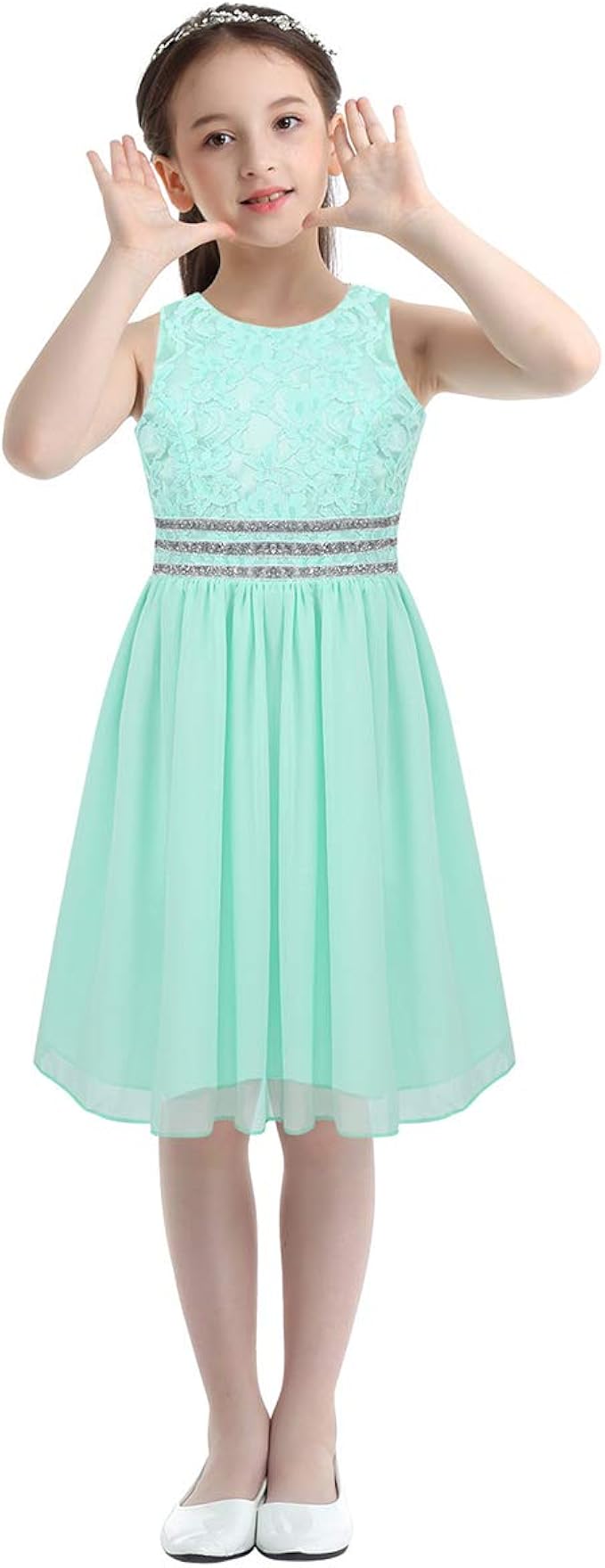 Iixpin Madchen Spitze Kleider Festlich Kinderkleider Brautjungfern Kleid Tull Hochzeit Party Kleid Blumenmadchenkleid Gr 116 164 Grun 164 Amazon De Bekleidung