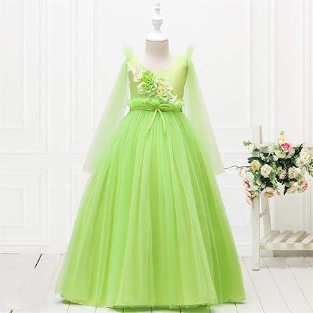 Qz Madchen Kleid Lange Party Hochzeit Kinder Kleider Fur Madchen Vestidos Prinzessin Kleid Madchen Langarm Tutu Kinder Kleidung 4 13 Jahre Green 120cm Amazon De Kuche Haushalt