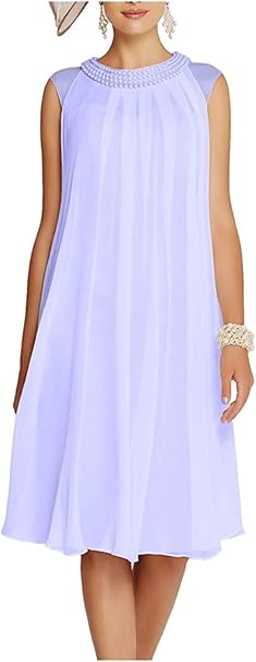 Cgown Chiffon Kleider Mit Perlenbesatz Knielang Fur Die Brautmutter Amazon De Bekleidung
