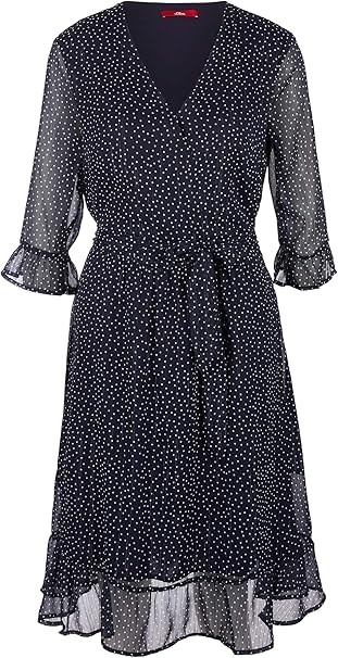 S Oliver Damen Crepe Kleid Mit Volants S Oliver Amazon De Bekleidung