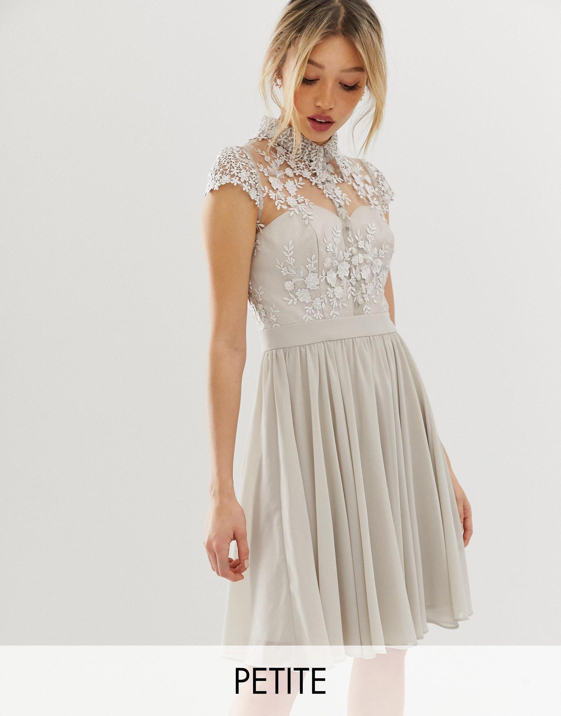 Chi Chi London Mini Prom Dress With Lace Collar In Grey Grey Lyst