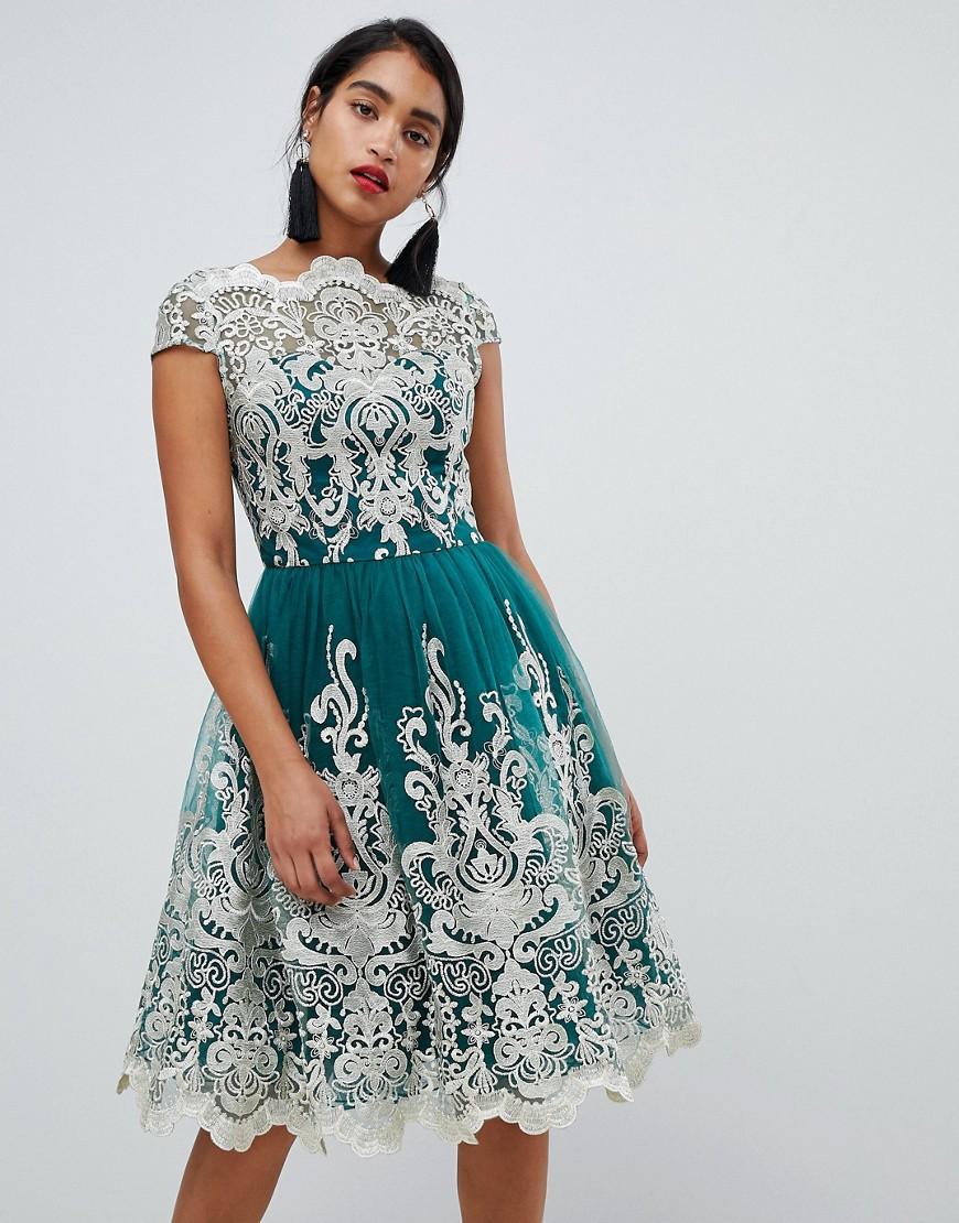 Chi Chi London High Neck Scalloped Lace Dress In Green Lyst