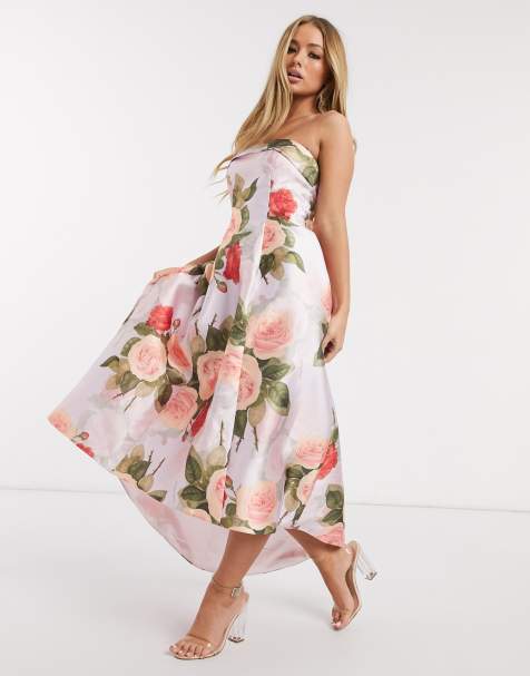 Chi Chi London Printed Organza Midi Prom Dress With Bardot Neck Shopperboard