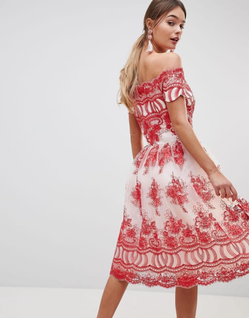 Chi Chi London Premium Lace Midi Prom Dress With Bardot Neck Shopperboard