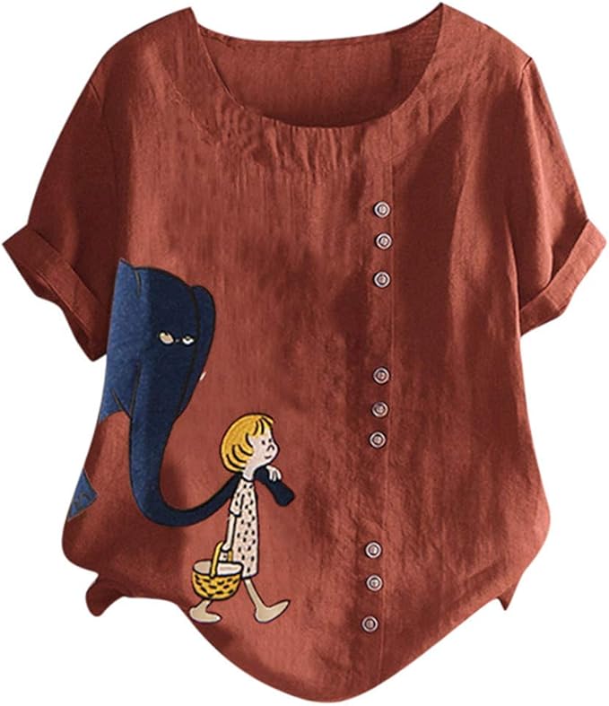 Roiper Shirt Damen Tops Damen Bauchfrei Mit Knopfen Oversize Tshirts Top T Shirts Blusen T Shirt Damen Weiss Basic Tshirt Lang Shirts Sommer Cartoon Bluse Kurzarm Oberteile Baumwolle Und Leinen Amazon De Bekleidung