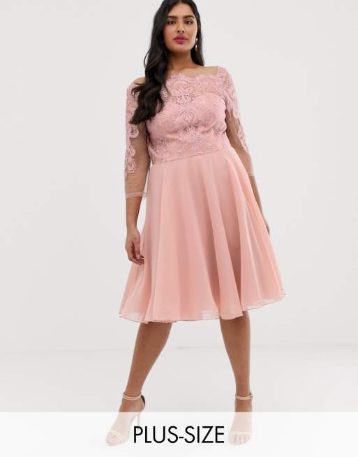 Chi Chi London Plus Hochwertiges Midikleid Mit Spitze Und Chiffon Rock In Rosa Asos