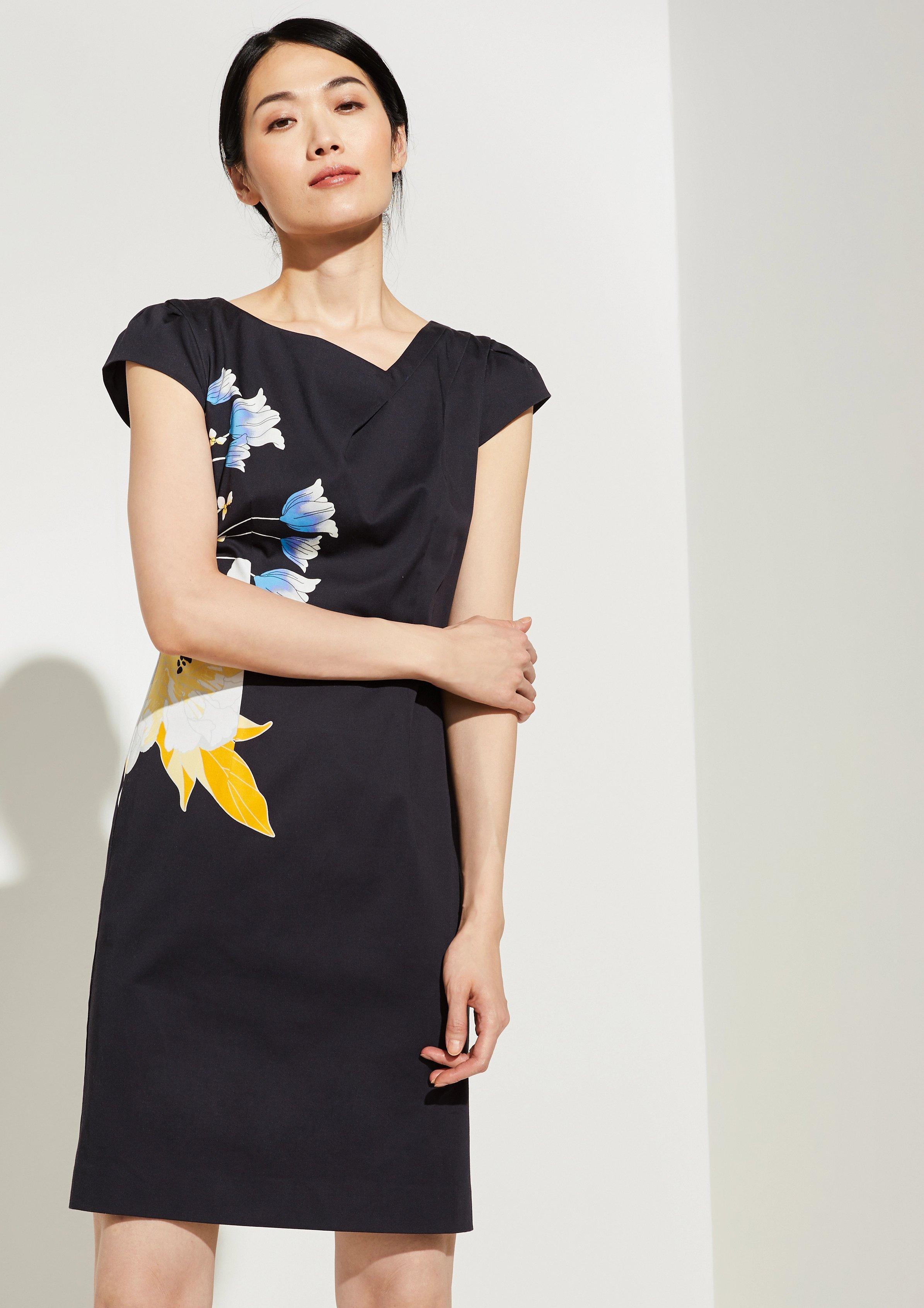 Comma Kleid Etuikleid Gr 36 Blau Weiss Blumen Mit Taillengurtel Neu Mit Etikett Ebay