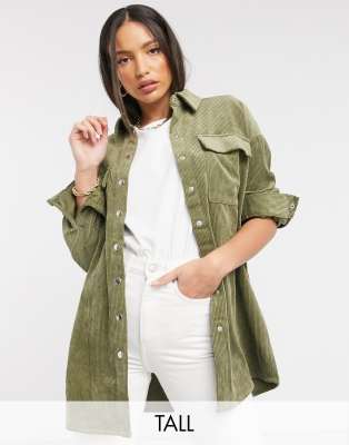 Vero Moda Cord Smock Shirt Dress In Green Asos