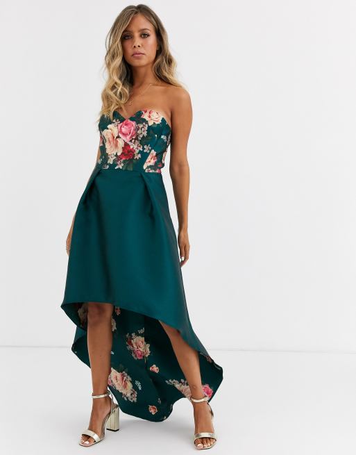 Chi Chi London Bandeau Prom Dress With High Low Hem In Green Floral Asos