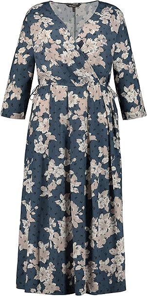 Ulla Popken Damen Kleid Mit V Ausschnitt Partykleid Blau Dunkelblau 70 48 Ulla Popken Amazon De Bekleidung
