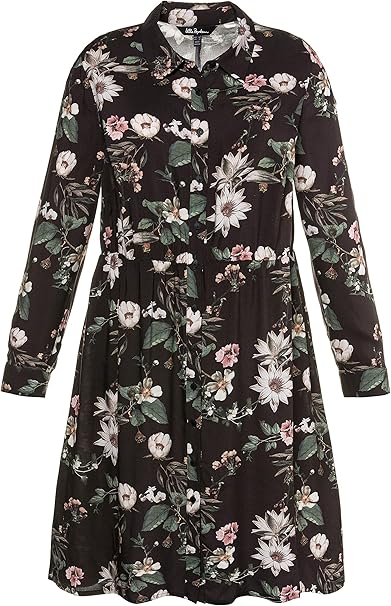 Ulla Popken Grosse Grossen Damen Kleid Hemdblusenkleid Blumenprint Mehrfarbig Schwarz 10 52 Herstellergrosse 50 Ulla Popken Amazon De Bekleidung