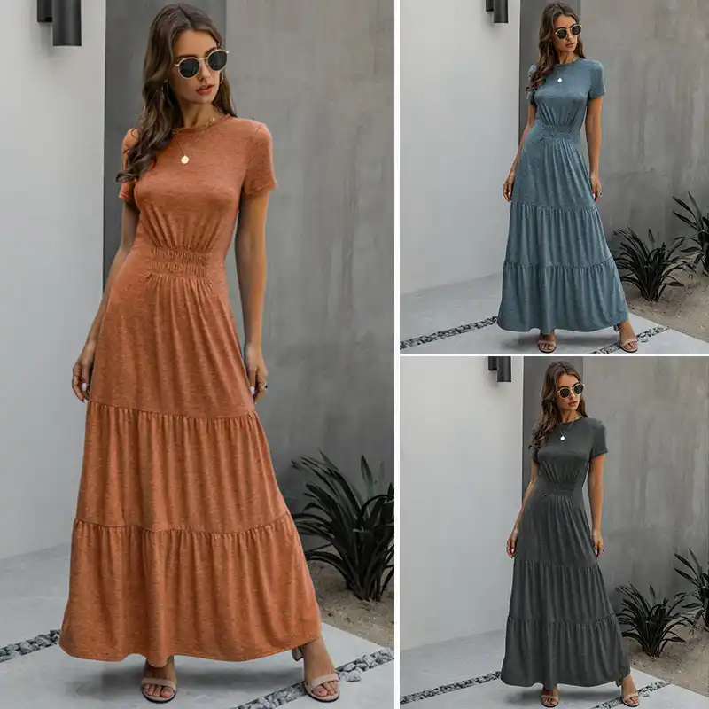 Lange Roben T Shirt Kleid Frauen Elegante Geraffte A Linie Kleider Casual Damen Sommer Maxi Kleider Kleider Aliexpress