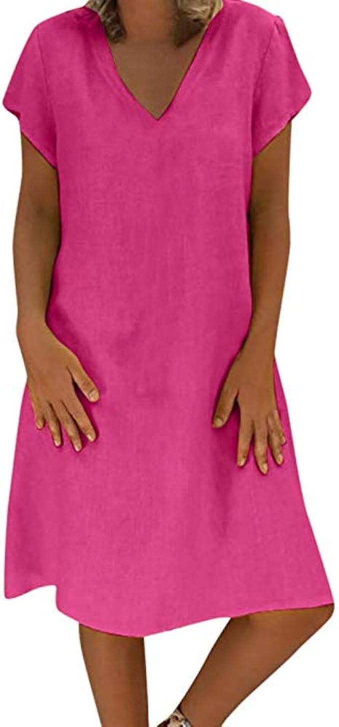 Oksea Damen Sommerkleid Leinen Kleider Damen V Ausschnitt Strandkleider Einfarbig A Linie Kleid Boho Knielang Kleid Ohne Zubehor Frauen Damen Art Und Weisedruck Kurzes Hulsen V Ansatz Kleid Jetzt Unschlagbar Gunstig
