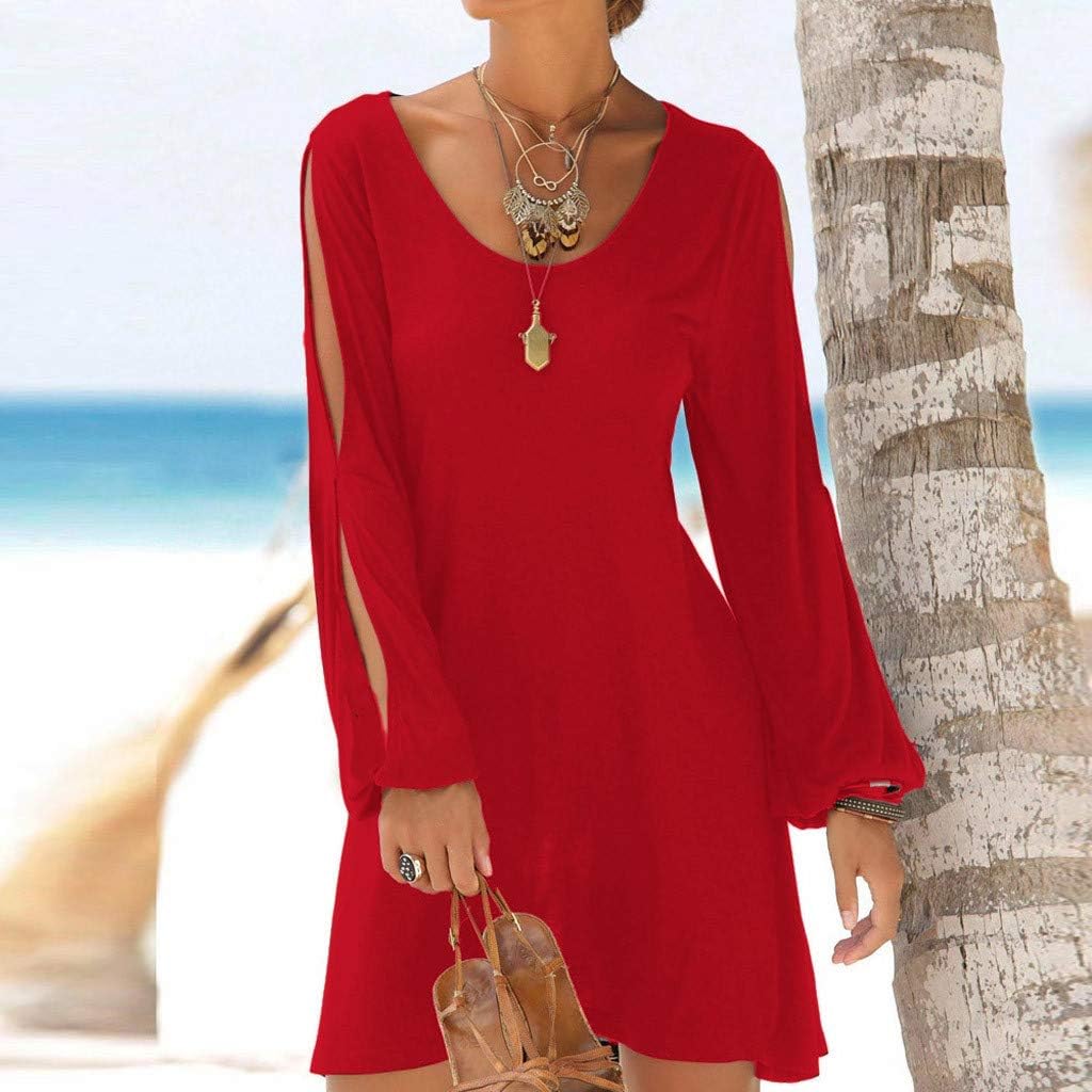 Einfarbiges Kleider Damen Sommer Kurz Sexy Hohl Laternehulse Mini Einteiler Rundhals Langarm Freizeitkleider A Linie Sommerkleid Casual Locker Strand Party Blusenkleid Rucksacke Bekleidung Zubehor