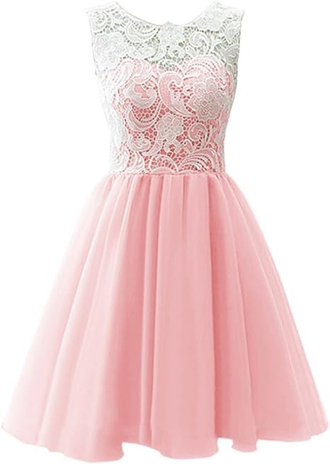 Caissen Damen Kurz Sheer Rundhals Spitze Tull A Linie Armellos Abiball Kleider Cocktailkleid Partykleid Tanzkleid Ballkleid Grosse 36 Rosa Amazon De Bekleidung