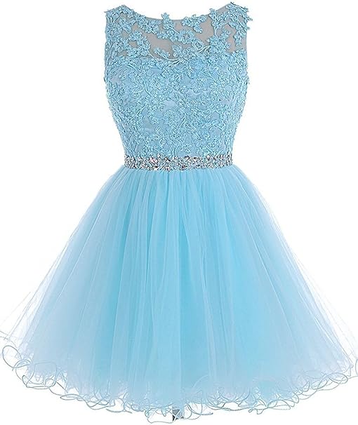 Broybuy Damen Kurz Ballkleid Sheer Rundhals Perlstickerei Applikationen Tull Abiball Kleider Grosse 56 Blau Amazon De Bekleidung