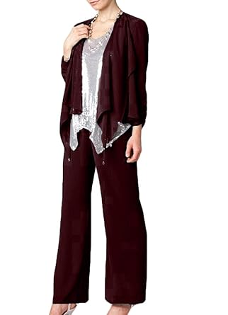 Pretygirl Damen 3 Stuck Elegante Pailletten Chiffon Kleid Fur Die Brautmutter Hose Mit Jacke Outfit Fur Hochzeit Hosenanzuge Bekleidung