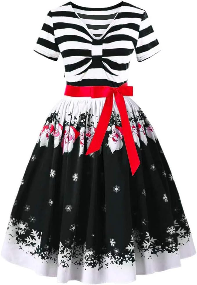 Lopily Weihnachtskleid Damen Gestreifte A Linie Kleider Swing Abendkleider Mit Santa Claus Druck Elegant Ausgestellte Weihnachtskleider Ausgefallen Fur Weihnachtsabend Amazon De Bekleidung