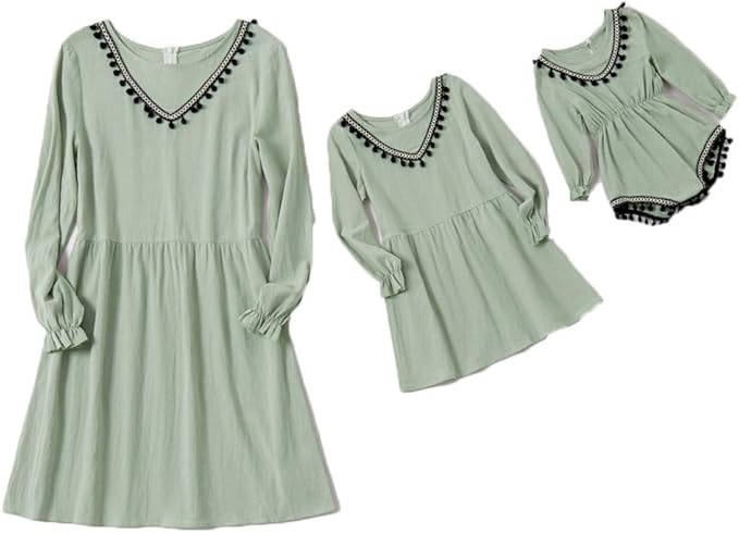 Eghunooye Eghunooye Mutter Und Tochter Langarm Kleider Familien Partnerlook Matchung Outfits Damen Kinder Baby Madchen Freeizeit Kleid Mit Quaste Kleider Amazon De Bekleidung