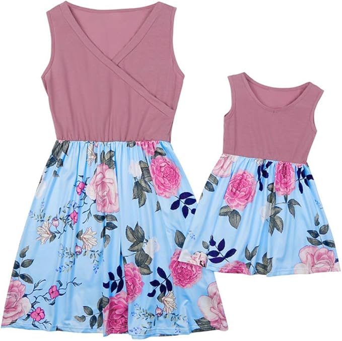 Miyanuby Miyanuby Frauen Baby Madchen Kleidung Sommer Armellose Blumen Blumenkleid Fur Mutter Und Tochter Kleider Amazon De Bekleidung