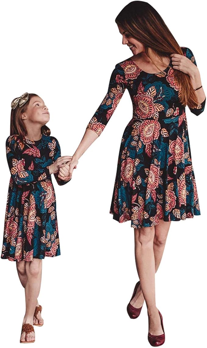 Vpuquuz Mutter Und Ich Mom Me Frauen Damen Kinder Madchen Blumen Familie Passendes Kleid Lassige Kleidung Frauen Kinder Baby Outfits Kleid Fur Mutter Tochter Amazon De Bekleidung