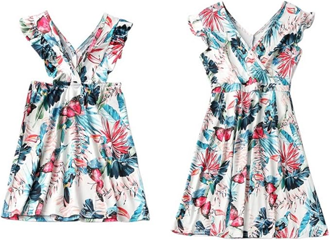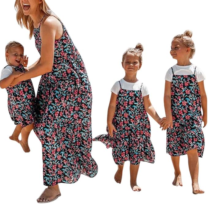 Mutter Tochter Kleidung Partnerlook Sommer Blumendruck Strapskleid Ruschen Maxi Strandkleid Mama Und Baby Matching Outfit Madchen Prinzessin Mode Beilaufig Kleid Familien Partykleid Amazon De Bekleidung