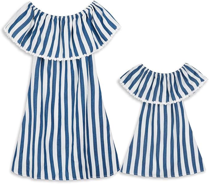 Mutter Tochter Partnerlook Baby Sommer Streifendruck Minikleider Mama Und Kind Matching Outfit Damen Madchen Prinzessin Beilaufig Kleid Partykleid Familien Kleidung Strandkleid Amazon De Bekleidung