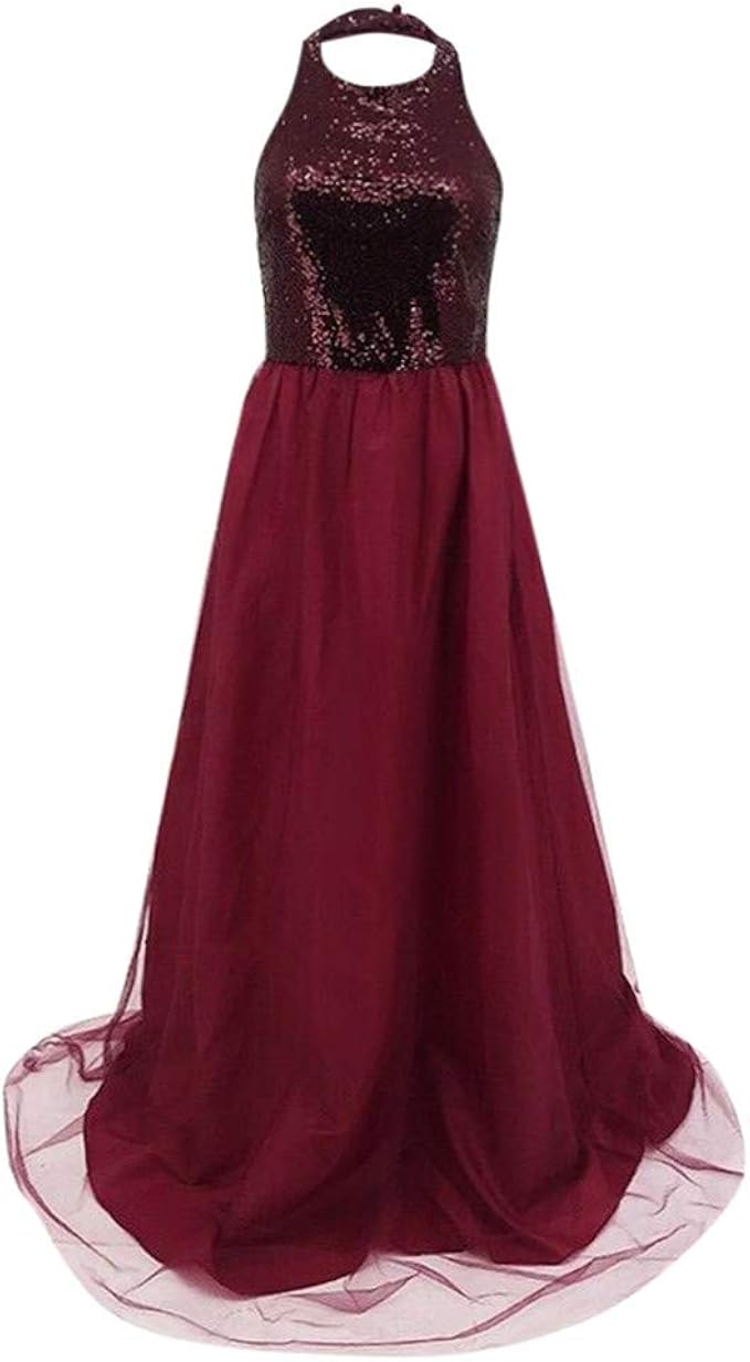 Mayogo Abendkleider Lang Cocktailkleid Elegant Brautkleid Standesamt Pailetten Maxi Neckholder Kleid Amazon De Bekleidung