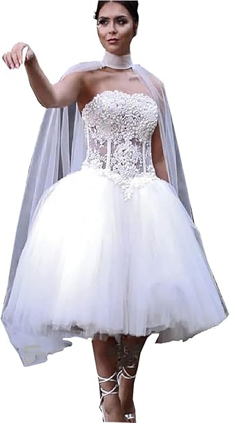 Yasiou Hochzeitskleid Kurz Standesamt Weiss Vintage Spitze Organza A Linie Hochzeitskleider Brautkleid Amazon De Bekleidung