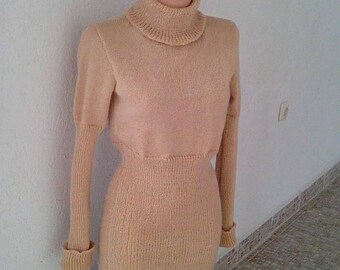 Lose Pullover Unter Knie Kleid Mit Ruckenschlitz Huftscharpe Etsy