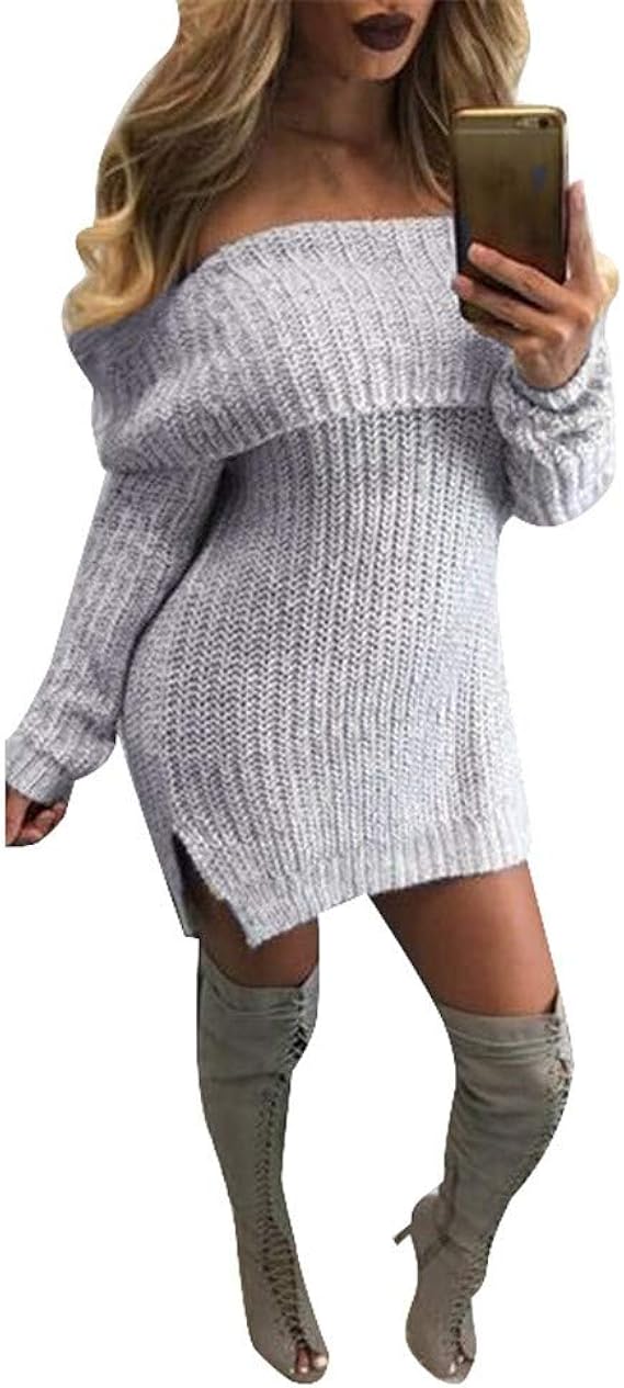 Dunne Pullover Kleider Damen Off Should Langarm Gestrickte Aus Der Schulter Strickpullover Kleid Tops Sweat Asymmetrisch Elegant Oberteile Uribaky Amazon De Bekleidung