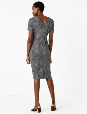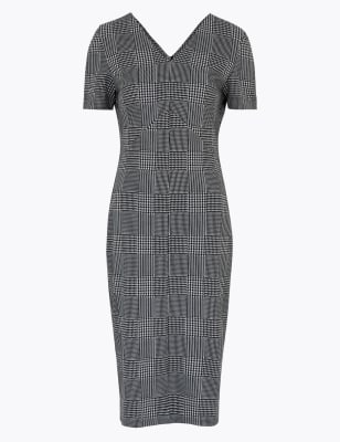 Auf Figur Geschnittenes Jersey Kleid Mit V Ausschnitt Und Karomuster