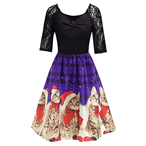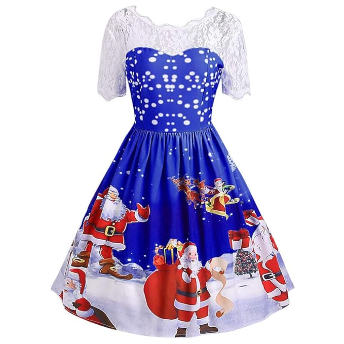 Longra Weihnachtskleid Damen Weihnachten Party Kleid Vintage Christmas Spitzenkleid Swing Kleid Mit Weihnachtsmotiv Festlich Kleid Knielang Rockabilly Kleid Cocktailkleid Abendkleid Amazon De Bekleidung