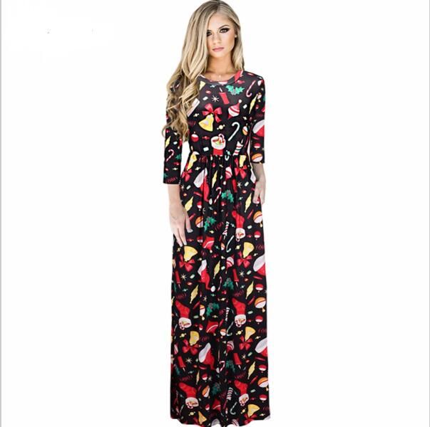 Grosshandel Sexy Frauen Weihnachten Blumendruck 3 4 Armel Boho Damen Lange Maxi Kleid Tasche Ice Silk Tunika Party Kleider Weihnachten Vestidos Dk0548bk Von Andrewknight007 9 88 Auf De Dhgate Com Dhgate