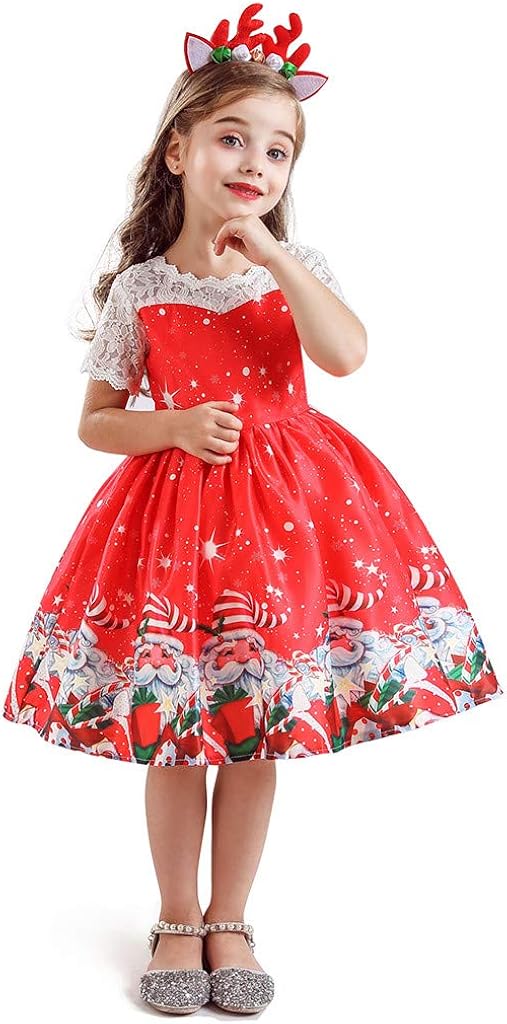 Amosfun 1 Stuck Madchen Weihnachten Kleid Festlich Gedruckt Zarten Kurzarm Kostum Volles Kleid Kinder Outfit Fur Urlaub Festival Weihnachten Amazon De Bekleidung