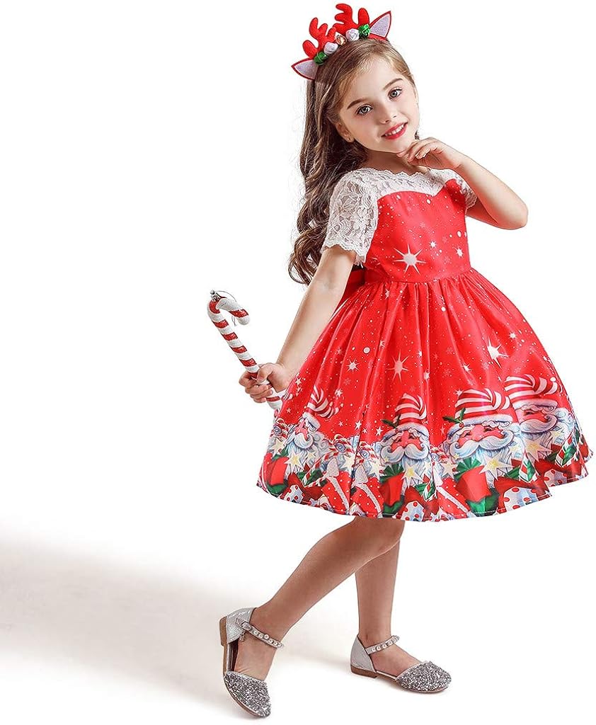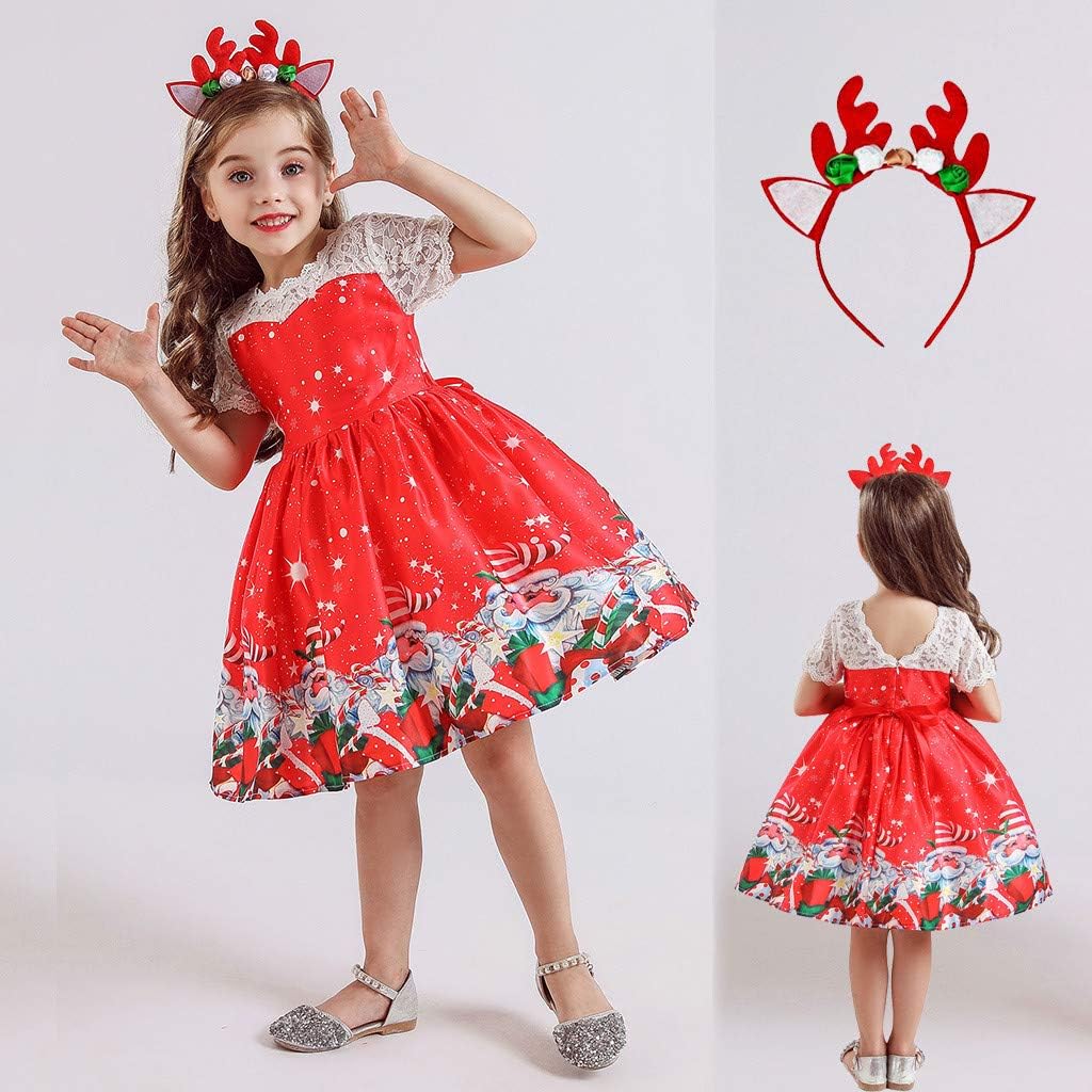 Stirnband Outfits Kleidung Set 2 7 Jahre Wexcv Kleinkind Weihnachten Kleid Kinder Baby Madchen Santa Print Kleid Weihnachten Schneemann Lace Print Prinzessin Kleid Wert Sc Com Br