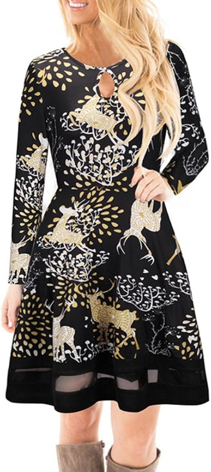 Yunyoud Christmas Kleidung Damen Drucken Kleid Lange Armel Minikleid Mode Party Kleid Beilaufig Strandkleid Nahen Cocktailkleid Weihnachten Abendkleid Elegant Kleider Amazon De Bekleidung