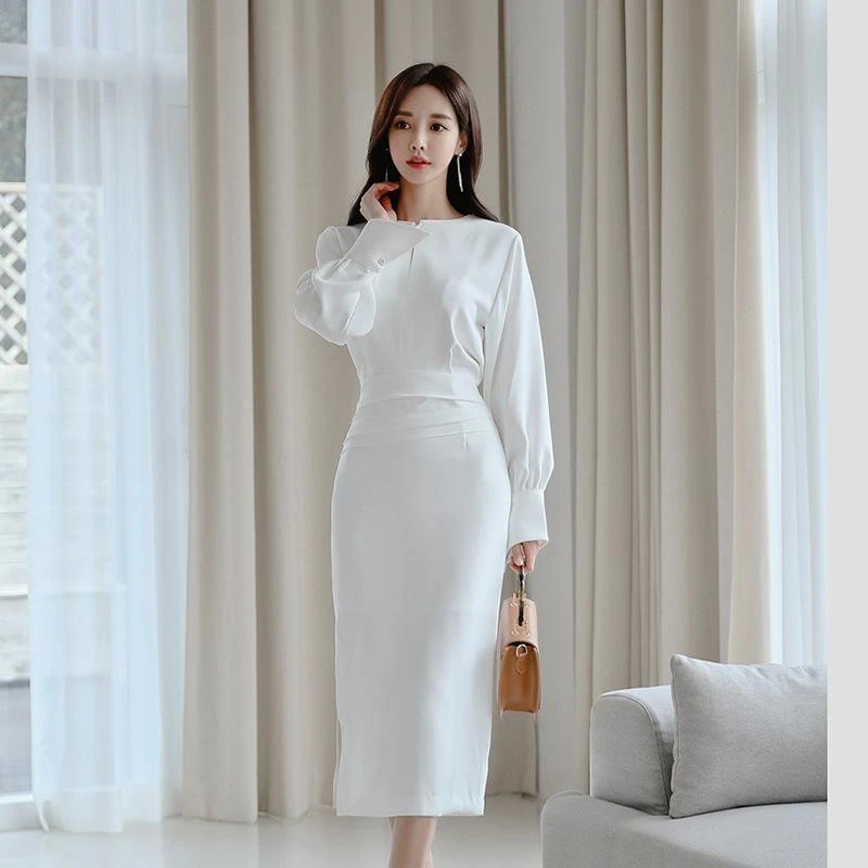 Herbst Buro Kleid Langarm Bodycon Kleid Elegante Weisse Weibliche Lange Kleid Frauen Party Kleid Damen Buro Arbeit Kleid Vestido Kleider Aliexpress