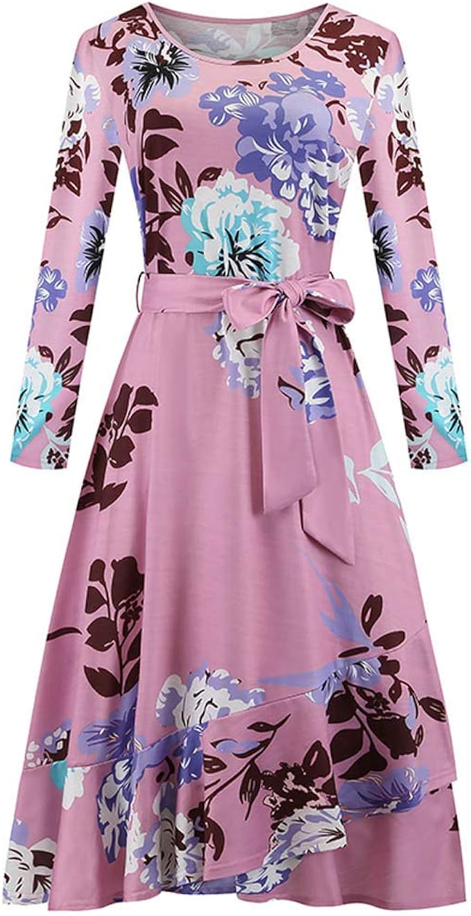 Shenye Damen Elegante A Linie Knopfleiste Blumenmustern Party Kleider Uni Langarm Flowy Modest Midi Arbeit Freizeit Kleid Blumen Kleider Kurz Knielang Partykleid Fur Herbst Fruhling Amazon De Bekleidung