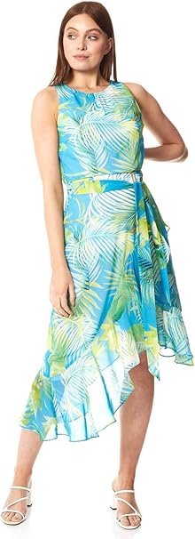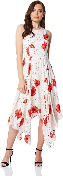Roman Originals Damen Kleid Mit Blumenmuster Und Zipfelsaum Damen Armelloses Midi Kleid Abends Formell Asymmetrisch Hochzeit Taufe Besondere Anlasse Partys Amazon De Bekleidung
