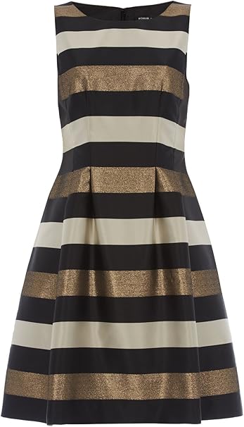 Roman Originals Damen Kleid Gestreiftes Cocktailkleid Knielang Hochzeitsgast Brautmutter Brautjungfer Gold Schwarz Grosse 38 Bis 46 46 Amazon De Bekleidung