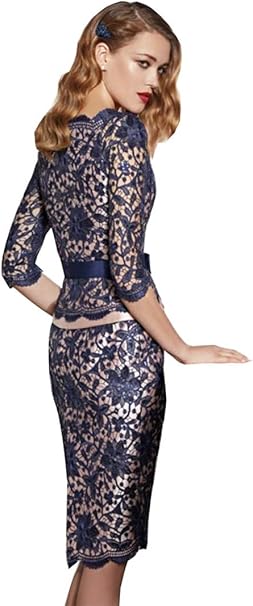 Cgown Kleid Fur Brautmutter V Ausschnitt 3 4 Armel Spitze Knielang Formelles Party Abendkleid Amazon De Bekleidung