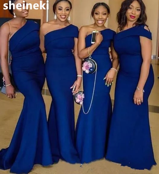 African Einfaches Blau Eine Schulter Meerjungfrau Brautjungfer Kleider Sweep Zug Garten Land Hochzeit Gast Kleider Maid Of Honor Kleid Brautjungfernkleider Aliexpress