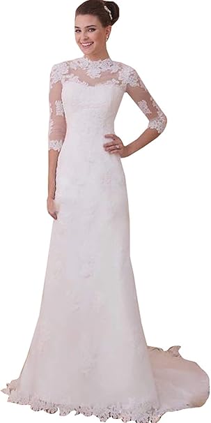 Iluckin Retro Hochzeitskleid Damen Standesamt Spitze Lang Meerjungfrau Hochzeitskleider Brautkleider 3 4 Armel Brautmode Mit Schleppe Amazon De Bekleidung